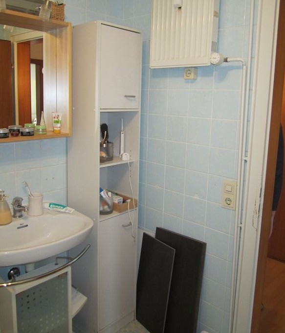 Die kleinen, fast identisch geschnittenen Bäder von zwei Wohnungen eines Mehrfamilienhauses aus den 70er Jahren waren stark sanierungsbedürftig.