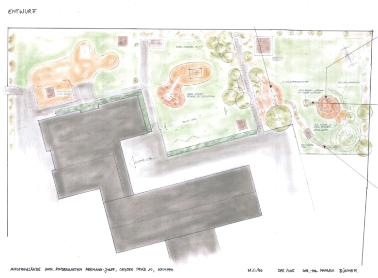 In enger Zusammenarbeit mit der Kindergartenleitung und interessierten Eltern wurde das Aussengelände unter diesen Gesichtspunkten überplant.