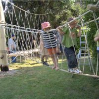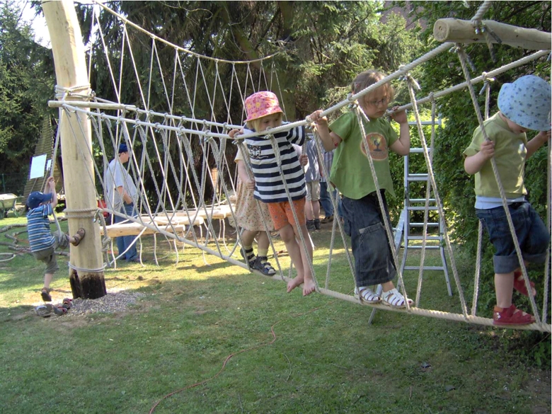 Da der Kostenrahmen klein und begrenzt war, wurde gut erhaltener Bestand, wie die Rutsche, saniert und wieder eingebaut. Der größte Anteil des Budgets wurde für das Niederseilgartenelement verwendet, bei dessen Aufbau die Eltern und Kinder ebenfalls helfen konnten.